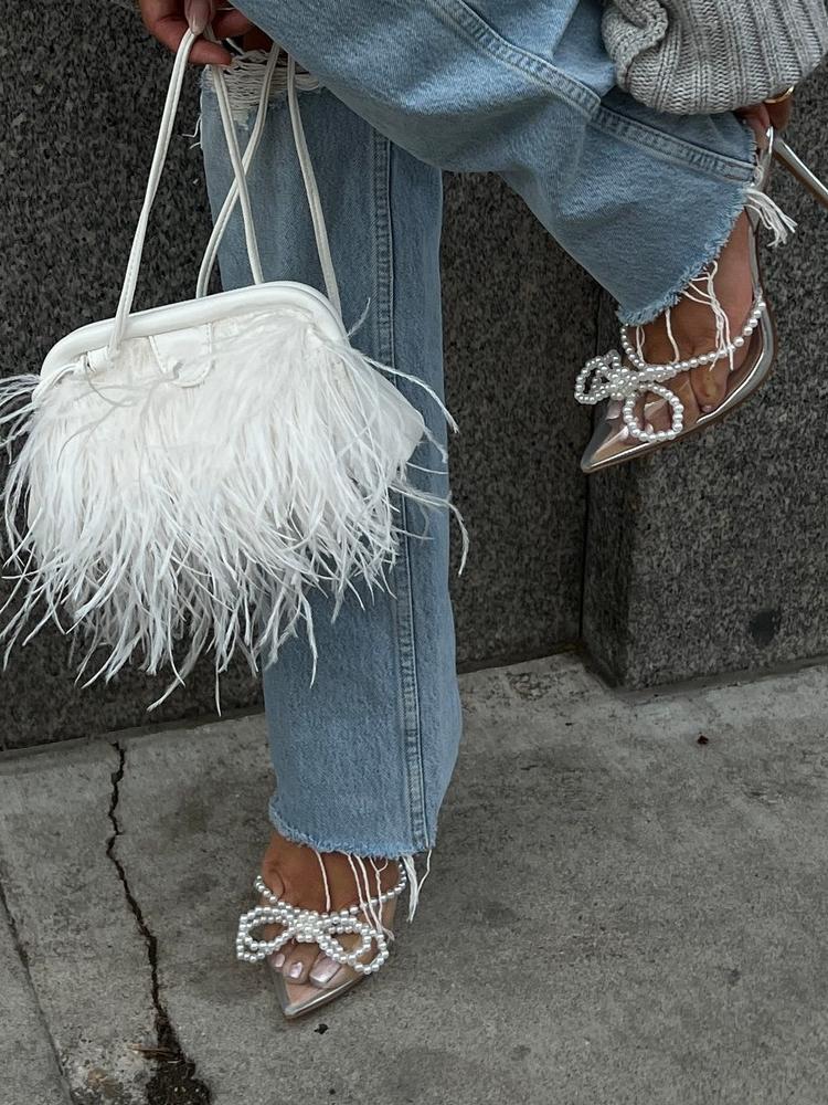 Oh my goodness, these wedding pumps are absolutely stunning! The clear PVC upper is beautifully embellished with a pearl double bow, and the ankle strap is also adorned with pearls for a touch of elegance and sophistication. These shoes are the perfect choice for any bride looking to add some serious glamour to her special day!