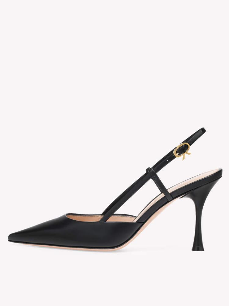 Black Slingback Metal Ribbon Buckle Pumps For Women