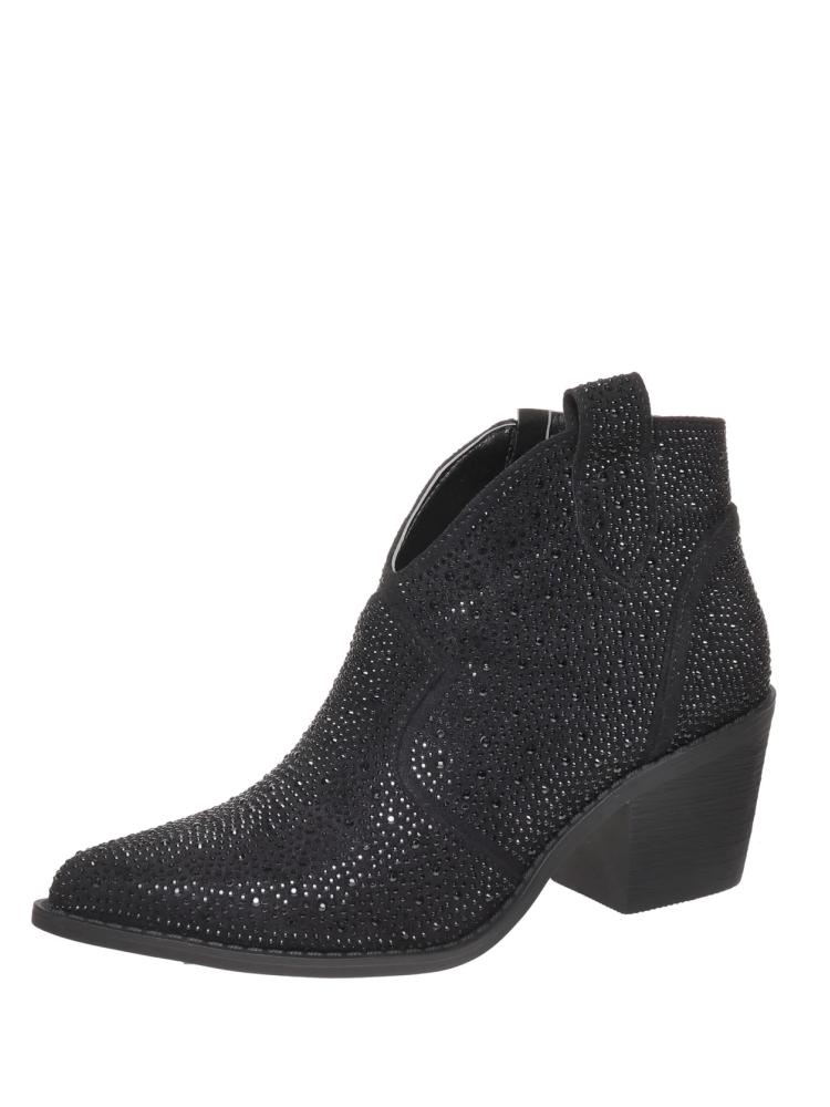 Rhinestone Pointed Toe High Heel Western Ankle Boots