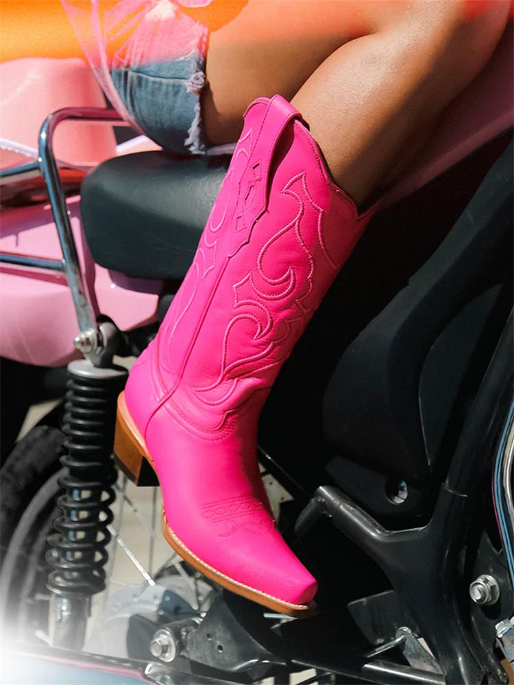 Check out that gorgeous pink leather, the mid height silhouette, and fun stitch patterns! Cute, country, and comfortable -- it's a triple threat! Rock these pink cowgirl boots all year around -- the western trend is HOT right now.