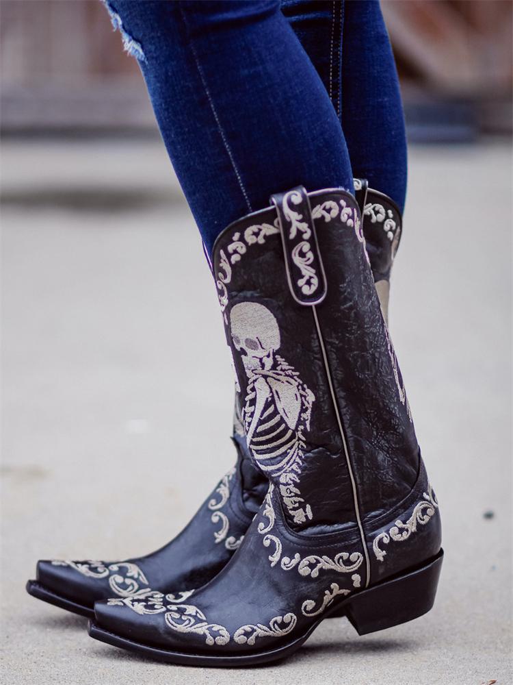 We're loving this playful design. The Boot features bad to the bone skeleton embroidery against variously colored leather. The symbolism here is what we're digging most. Everyone is equal in the end.