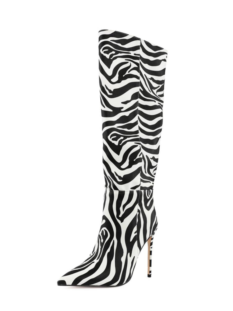 Zebra Stripes Mid-Calf Pointed-Toe Stiletto Heeled Boots